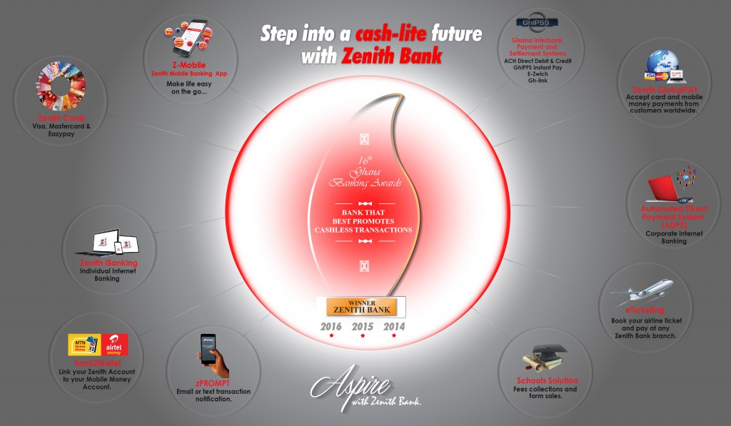 Zenith Bank believes the momentum that digital finance has gained in Ghana will remain strong for years to come, driven by government and regulatory initiatives, innovation by service providers, increasing financial literacy, and an improving economy. The bank will stand ready to take advantage of both the opportunities and challenges this evolution will certainly present, by continuously investing in its people and infrastructure, innovating its products and services, exploring strategic partnerships, and putting the customer at the heart of everything it does. Being adjudged “The Bank That Best Promotes Cashless Transactions in Ghana” at the 16th Ghana Banking Awards, which is the third consecutive success, underscores the Bank’s leadership in digital finance in the Ghanaian banking industry.