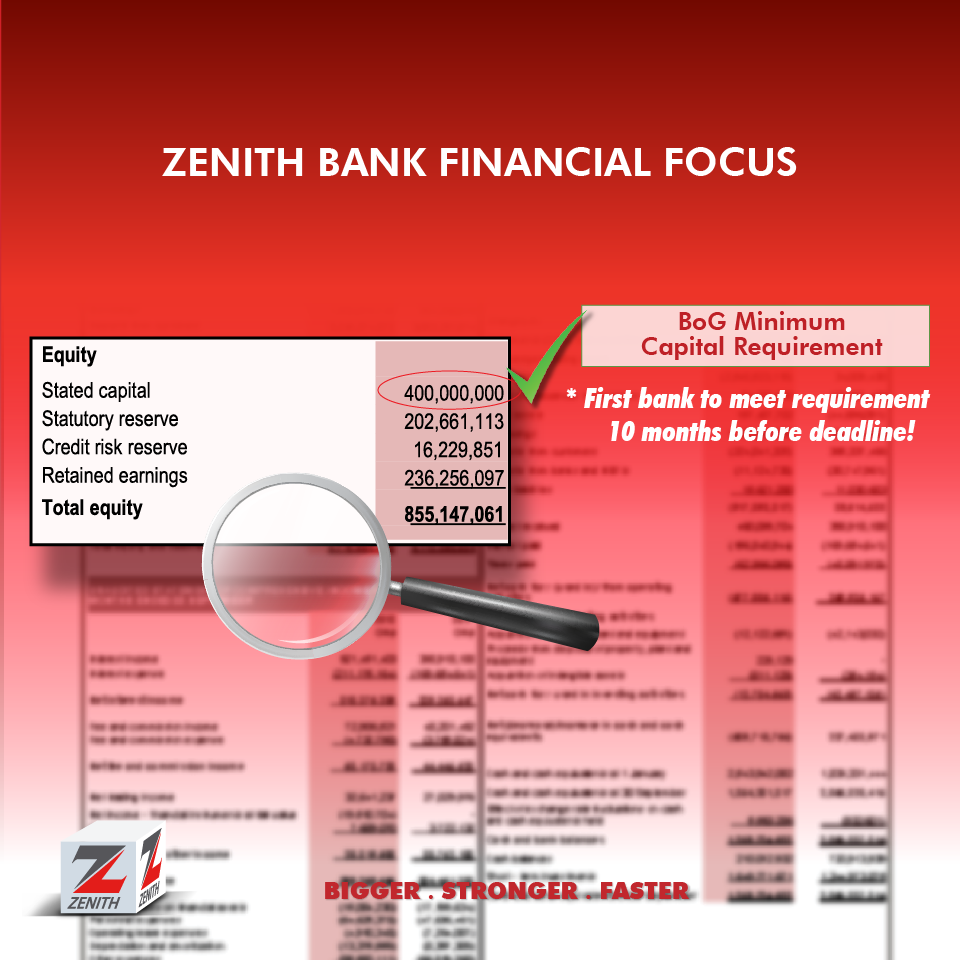 Zenith Bank Ghana, in February 2018, became the first bank in the country to meet the new minimum capital requirement of GH¢ 400 million set by the Central Bank – ten months ahead of the 31st December 2018 deadline. This feat was made possible by the 100% dividend retention policy of the Bank since inception. Again, this demonstrates the long term interest Zenith Bank has in this economy. The Bank’s huge capital base also means that the Bank has the requisite capacity to compete at the highest levels.